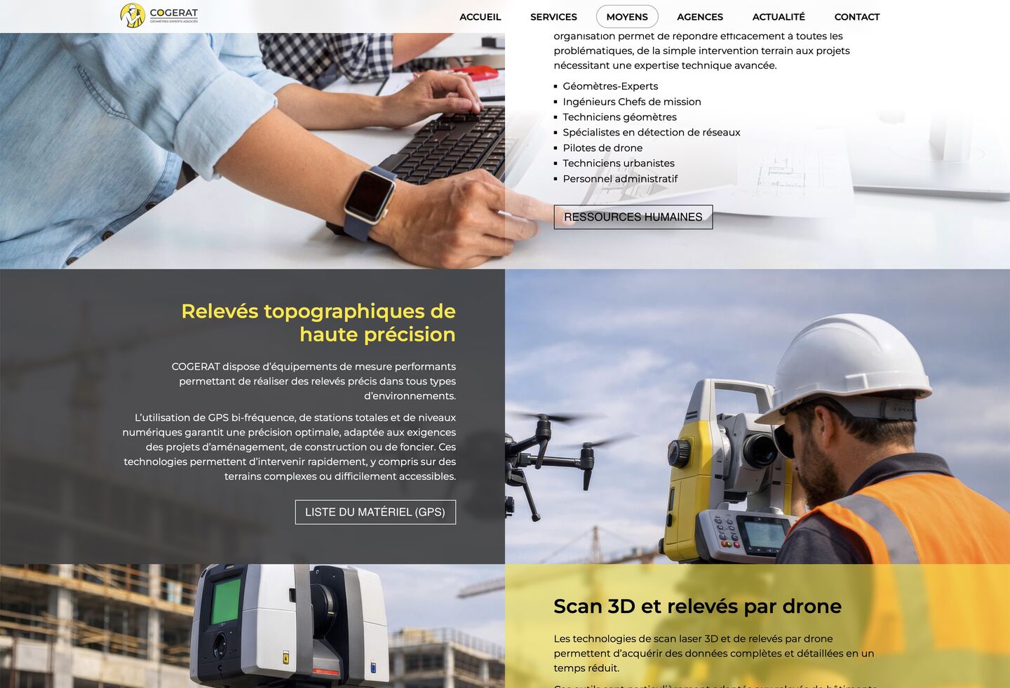 Le site cogerat.com a été entièrement conçu afin de doter le cabinet COGERAT, spécialisé en topographie, urbanisme et ingénierie foncière, d’une présence en ligne à la hauteur de son expertise.